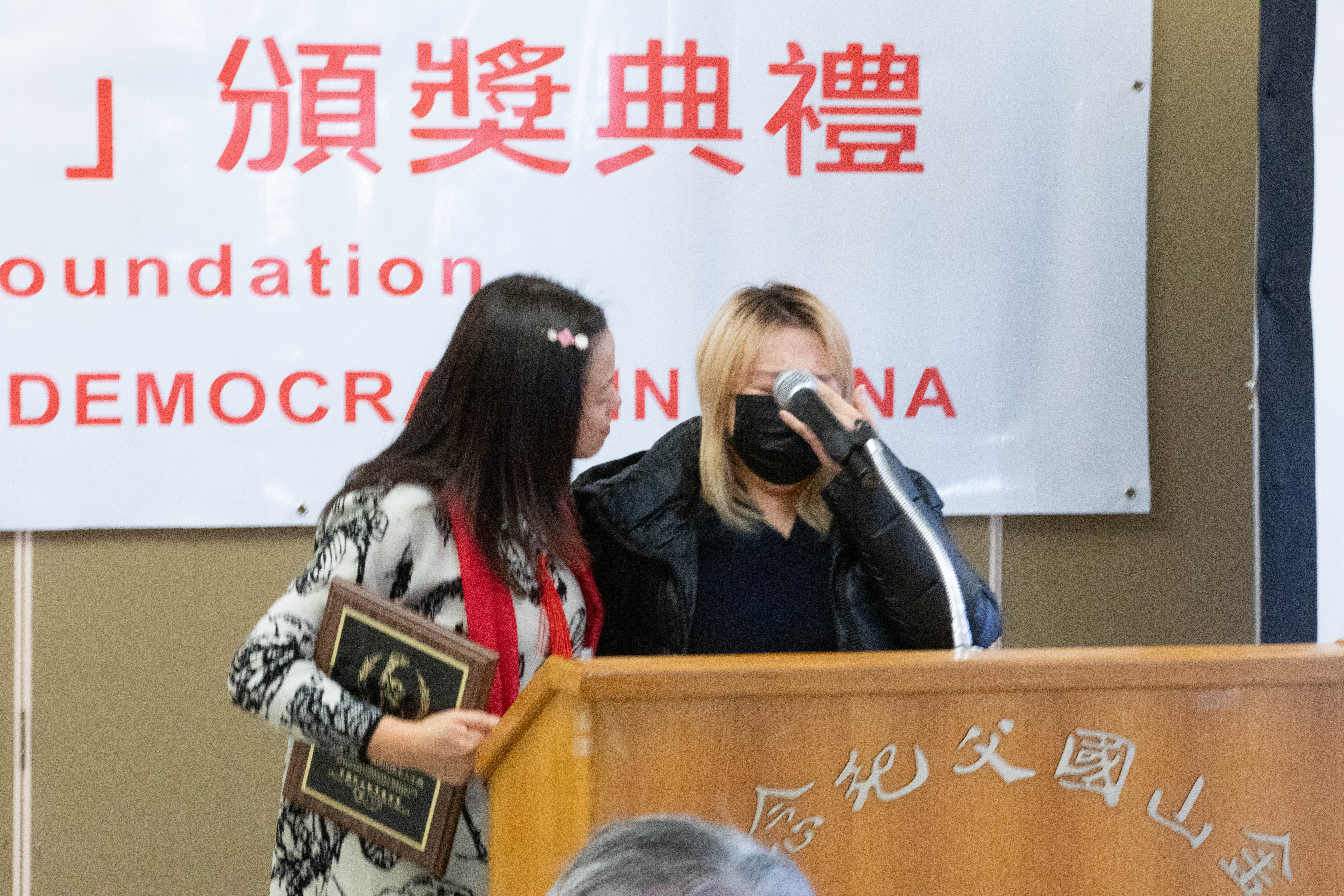 香港手足阿丝代为领奖,并动情表示:“她用行动证明,身体可以被囚,良知不会。”